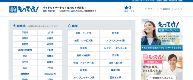「求人情報 もってけ!」は、山口県初の求人フリーマガジンとして2003年に創刊されており、県内での高いシェア率を誇っています。サイト内に掲載された求人は、「Yahoo!お仕事検索」や「Indeed」などの有名な外部サービスに、追加費用なしで掲載される点も魅力的です。