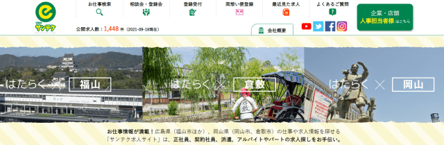 岡山県に特化した求人サイトとしては最大級であり、エリア・職種を問わず多くの企業が求人を掲載しています。