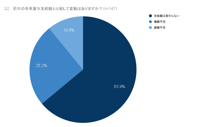 Q2. 前年の冬季賞与支給額と比較して、今年の支給額に変動はありますか?