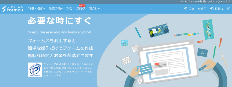 フォームツールとは、お問い合わせや応募などの際に使われる『フォーム』の機能を簡単に作成できるツールです。