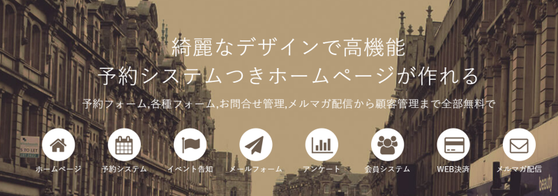 - サイトまでデザインできるほか、イベントの告知や予約機能も