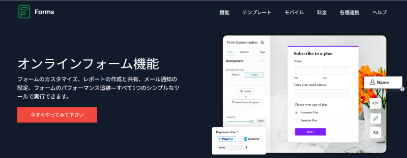 直感的に作成可能なフォームツールです。無料プランはありませんが、14日間の無料体験期間があり、機能や動作性を試すことができます。また、専任のカスタマーサポートがついてくれるため、不明点を確認しやすくなっています。