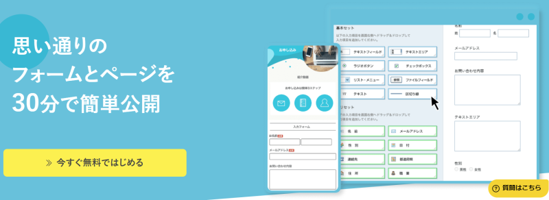 フォームツールとは、お問い合わせや応募などの際に使われる『フォーム』の機能を簡単に作成できるツールです。
