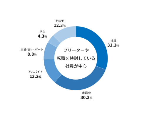 他に、「アルバイト」や「主婦(主夫)」「学生」といった人材も利用していて、幅広い層から人気です。