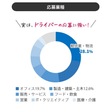 その中でも、バイトルNEXTユーザーの応募職種のうち28.1%が「軽作業・物流」を希望。「2024年問題(※)」に対応するうえでも、バイトルNEXTが強力な味方になるでしょう。