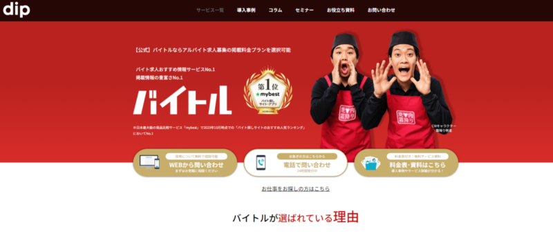 ①日本最大級の求人サイト「バイトル」を使った採用が可能