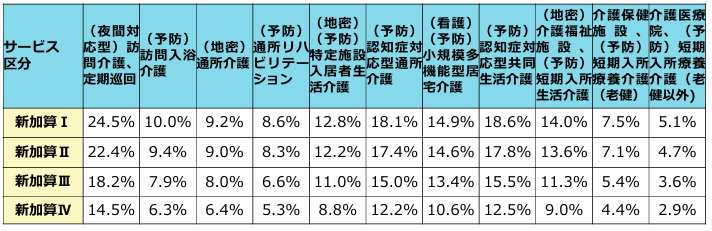 新加算についてサービス類型ごとの加算率は下記のとおりです。