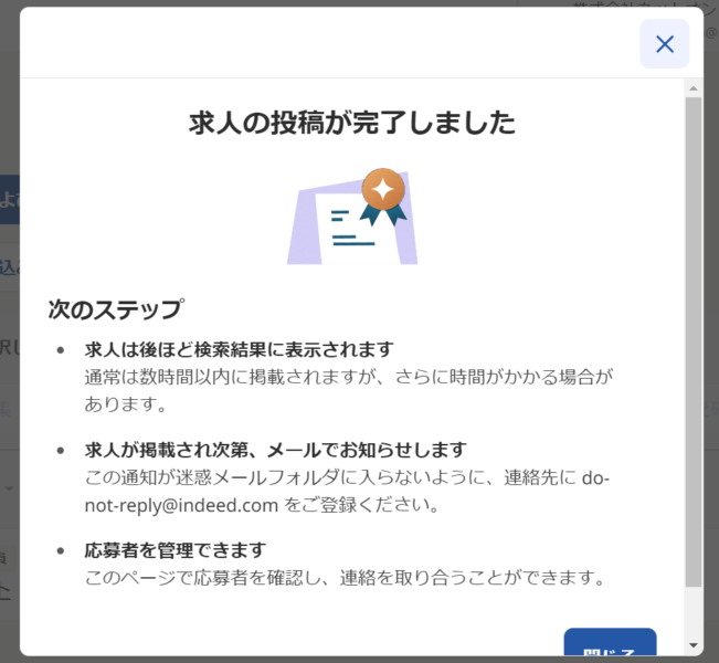 Indeed広告の掲載方法に関しては、また別の記事でご紹介しておりますので、出してみようと考えておられる方は、ぜひ別記事をご覧ください。