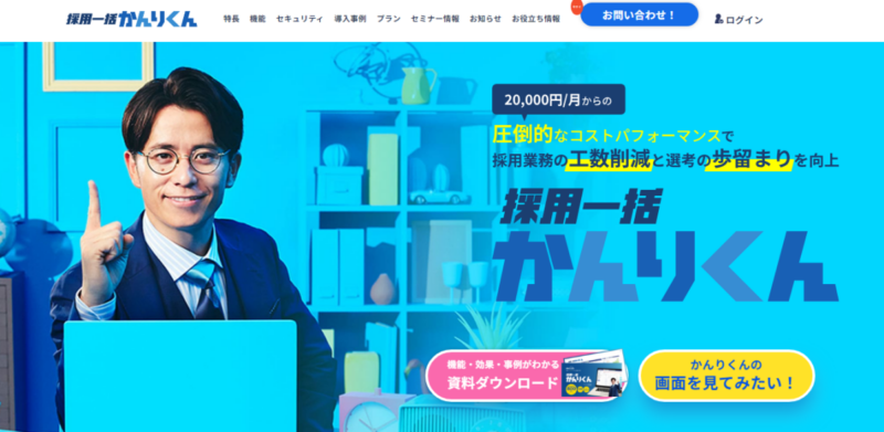 「採用一括かんりくん」は、リクナビ、マイナビなど各種サイトからエントリーする応募学生を簡単に一元管理できる採用管理システムです。 大手適正検査会社のツールと連携し、測定結果をもとに自社とマッチングする学生にスカウトを配信できます。 内定辞退のリスクを軽減するために、クローズドSNS、内定辞退危険度チェック、イベント出欠管理など、内定者フォロー機能も充実したシステムです。 料金:要問合せ |