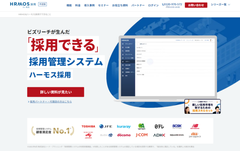 「i-web」は、就職希望ランキング上位企業での、採用管理システム有償ツールの導入シェアが新卒採用向けでは1位を獲得しているシステムです。 リクナビ、キャリタス就活、OfferBox(オファーボックス) との連携もでき、リアルタイムでエントリデータを自動同期できるため、求職者にも高い利便性を提供し応募機会の増加を図れます。 Another8、G9、ヒューマネージの検査など各種の適性検査やSPI3のテストともリアルタイムで連動させることができるので、新卒採用に有利な機能を取りそろえていることはもちろん、その他キャリア、インターンシップ、グローバル採用向けなどさまざまなモデルを用意しています。 初期費用:要問合せ 月額料金:要問合せ |