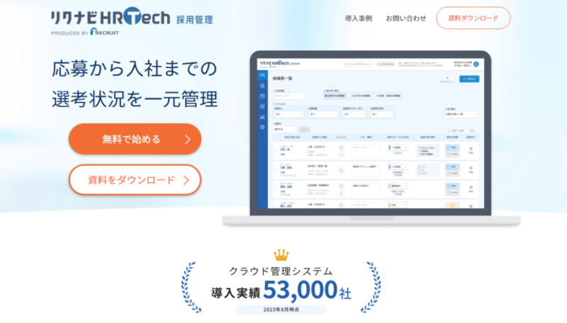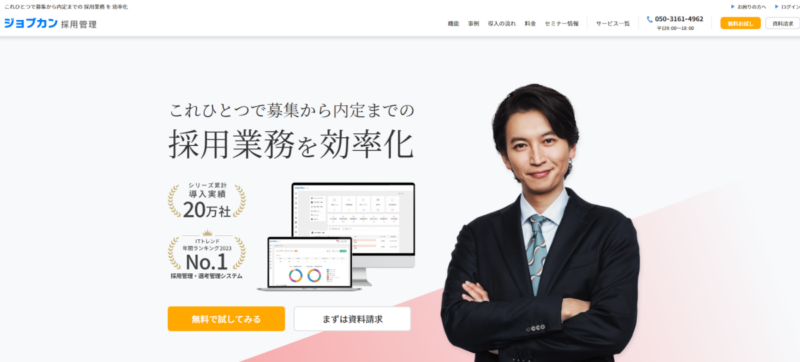 「ジョブカン」は、一目でわかりやすいダッシュボードの操作性の良さと、応募者の一元管理から分析まで細やかでバランスよく備えられた採用管理システムです。 タスクの自動表示機能もあるので、タスク漏れや連絡遅れによる採用機会の損失を防ぎます。 また、同社が提供するその他の労務管理システムともデータ連携できるため、入社手続きもスムーズに行えます。 初期費用:0円 月額料金:8,500円~ |