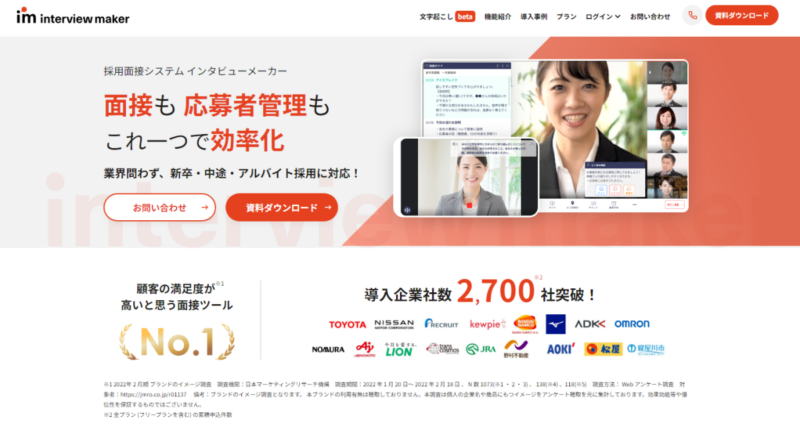 | インタビューメーカー | ・オンライン面談機能 ・求人媒体の効果測定 ・SSL対応クラウド |