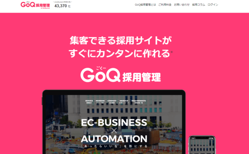 「GoQ採用管理」は、自社の採用サイトを作成でき、作成した求人情報をIndeedへ掲載できる採用管理システムです。 サイトに使用するドメインは「○○(企業名).recruit.site」なので、自社サイトとリンクさせても閲覧者に自然な印象を与えられます。 また、効率的に応募者を増やせると今人気のIndeedで、無料から広告掲載できるので応募者の集客を望めます。 初期費用:30,000円 月額料金:19,800円~ |