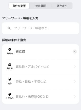 - キーワード入力や条件指定の画面がシンプルで直観的に求人を探すことができる