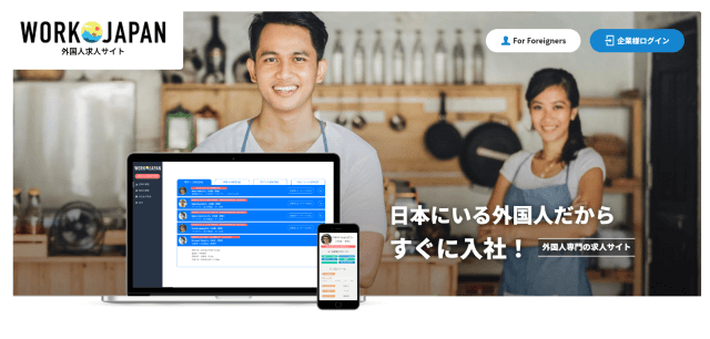 外国人採用に特化した求人サイトとして、国内最大級の規模を誇っているのが、WORK JAPANです。英語や中国語など8ヵ国の言語に対応しており、求職者とのスムーズなマッチングが実現します。