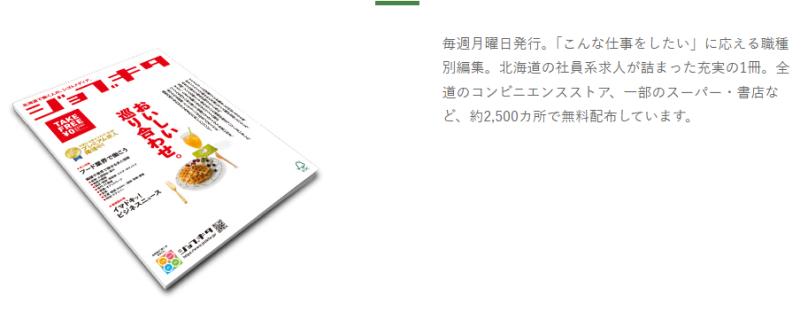 | ジョブキタ転職 | 毎週月曜日 | 北海道全域 | 16,500円~ |