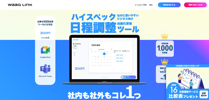 「waaq Link」はwaaq株式会社様が運営する、日程調整ツールです。