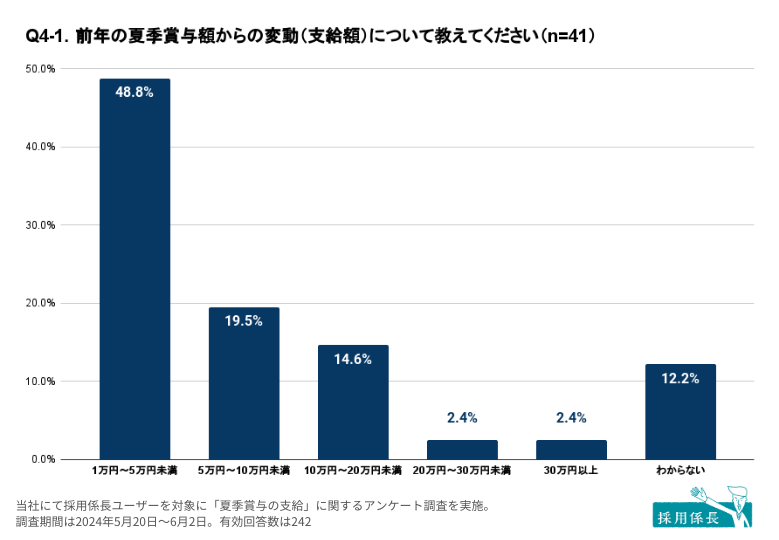 昨夏からの変動について、支給月数(基本給換算〇カ月分)での回答も求めました(n=41)。