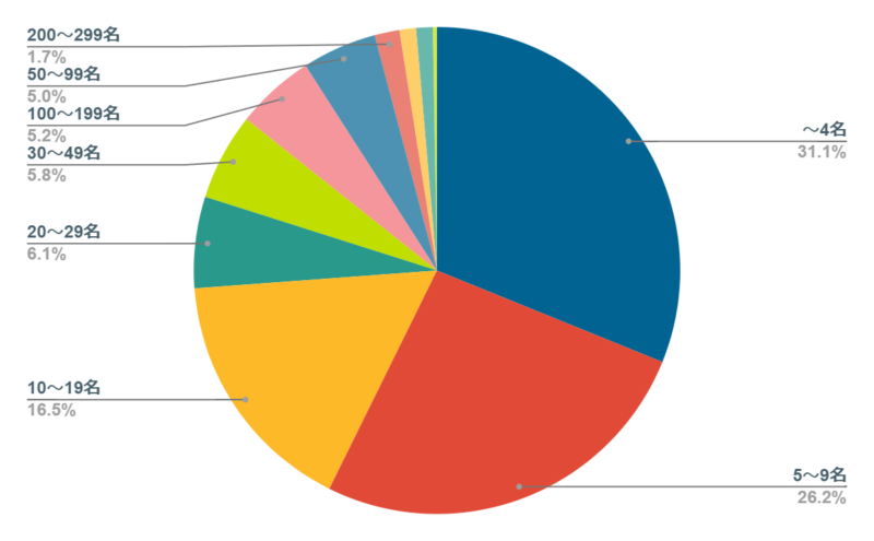 従業員規模20名以下の事業所様を中心に「飲食」、「建築・不動産」、「介護・福祉」、「医療」など様々な事業所様にご回答いただきました。