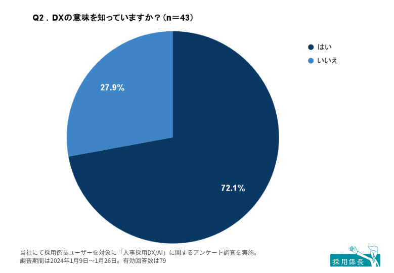続いて、Q1で「はい(=聞いたことがある)」と回答した事業所へ、DXの意味を知っているかどうかについて質問しました(n=43)。