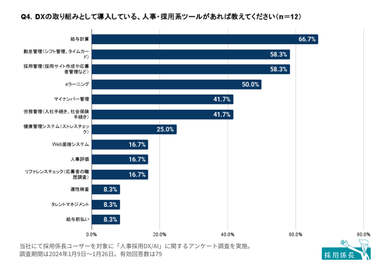 Q3で「取り組んでいる」と回答した事業所へ、導入している人事・採用系ツールについて質問しました(n=12)。