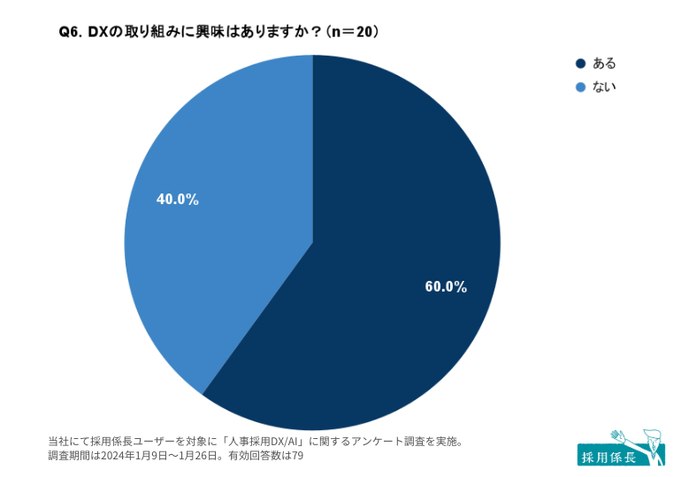 「ある」と回答した事業所は60.0%。前回調査(39.3%/n=56)から20.7ポイント増加しました。前回調査よりも有効回答数が少ない点には留意が必要ですが、DXへの関心は決して少なくないことが読み取れます。