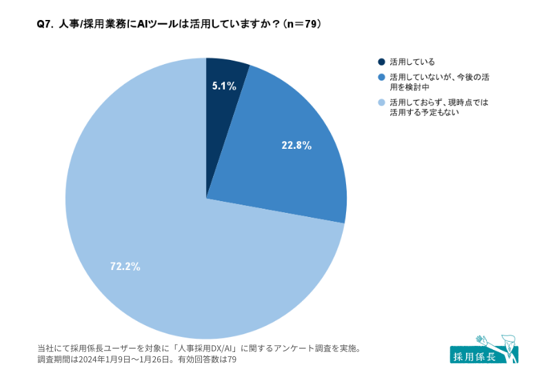 人事・採用業務のAIツールは、72.2%が「活用しておらず、予定もない」