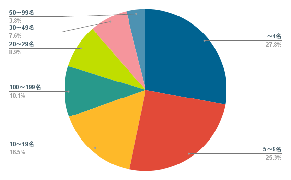 従業員規模20名以下の事業所様を中心に「医療」、「建築・不動産」、「飲食」、「介護・福祉」など様々な事業所様にご回答いただきました。
