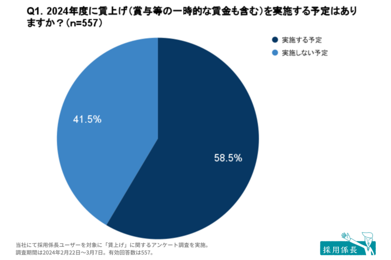 58.5%の事業所が賃上げを「実施する」と回答