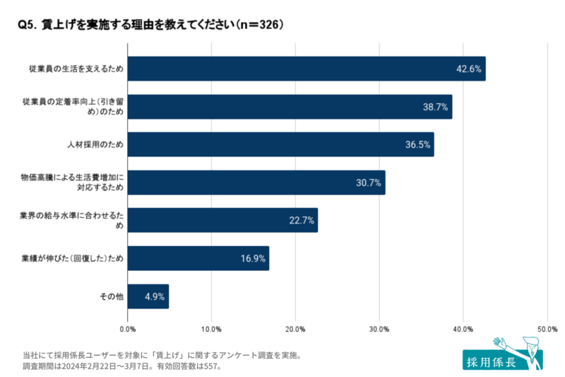 賃上げ理由上位は「従業員の生活を支える」「従業員の定着率向上」「人材採用」