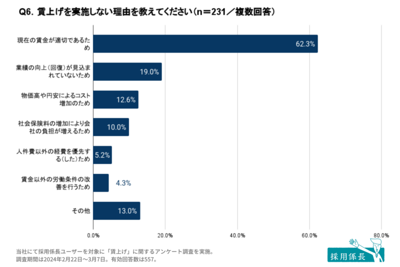 賃上げしない理由1位は「現在の賃金が適切であるため」