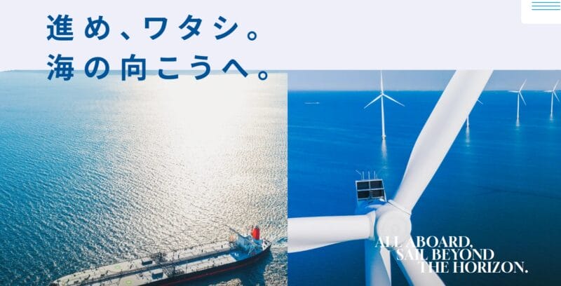 商船三井の採用サイトは、「海」を連想させるブルーを基調とし、ダイナミックな写真や動画を多用したデザインが特徴です。スケールの大きな事業内容を視覚的に訴えかけることで、グローバルな仕事への魅力を強調しています。