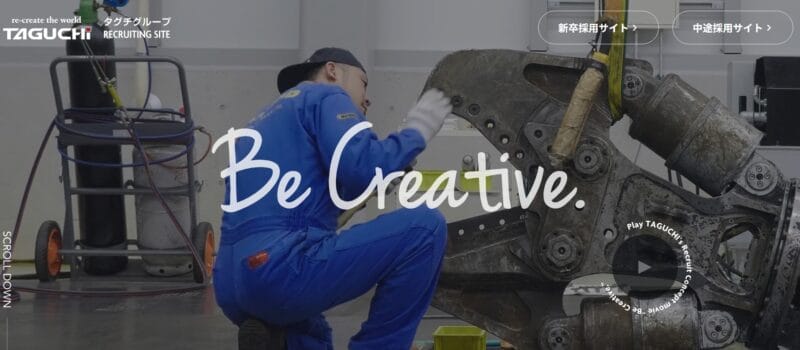 タグチグループの採用サイトは、シンプルながら大胆なデザインが特徴です。