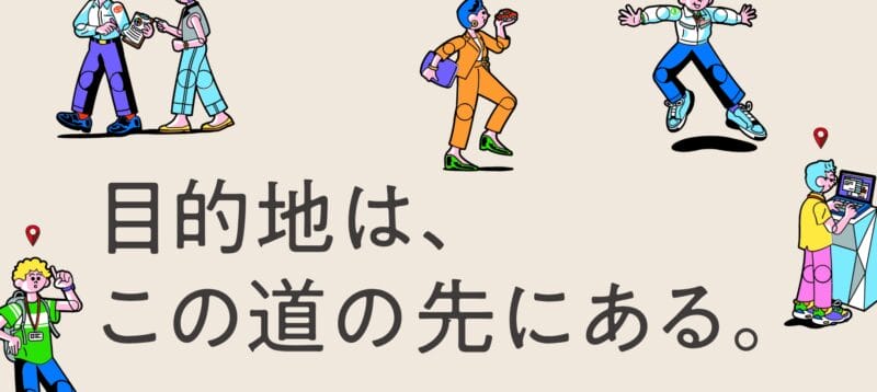 「目的地は、この道の先にある。」という言葉とともに、未来に向けた企業の変革や挑戦的な姿勢を表現しています。