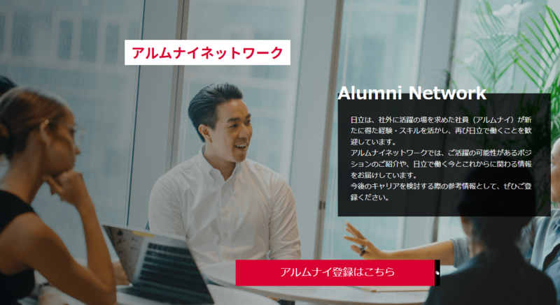 株式会社日立製作所様では、採用競争激化を背景にアルムナイに注目。日立製作所様内で単独実施により有効性を確かめた上で、取り組みをグループ8社に拡大しています。