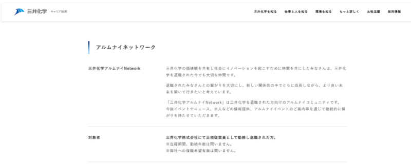 三井化学株式会社様では、事業ポートフォリオの変革により採用職種が多様化している背景からキャリア採用を強化され、アルムナイ採用やリファラル採用に注目し施策実施されています。