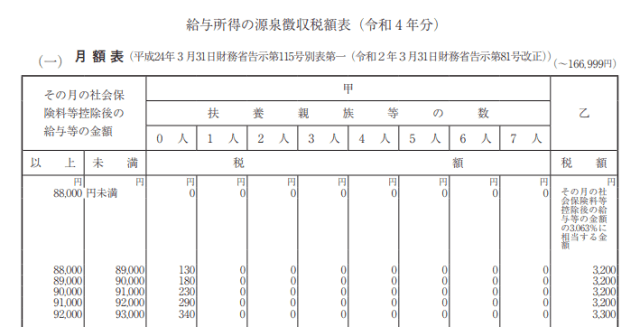 (出典:令和4年分 源泉徴収税額表|国税庁)