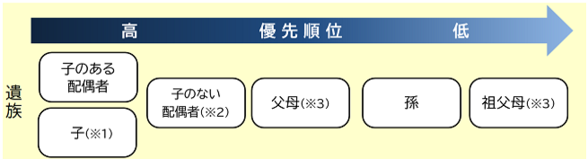 なお、遺族厚生年金を受給する遺族の優先順位は、下図のとおりです。