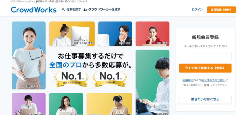 『クラウドワークス』は、企業と個人をつなぐクラウドソーシングプラットフォームです。さまざまな業種の仕事を扱っており、利用者数も多いことから、企業の人材不足を解消するうえで人気のサービスとなっています。