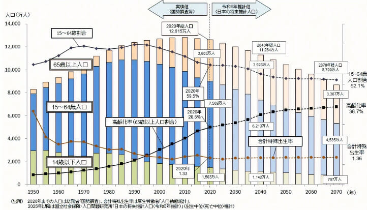 2025年に65歳以上の人口が29%に、2040年には35%になると見込まれています。