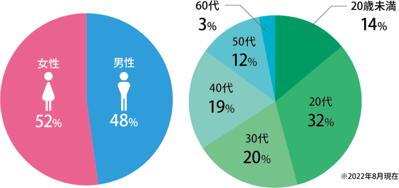 男女別に見るとユーザーは半々となっており、年代別では、20代~30代の若い世代を中心に、40代、50代のベテラン層も一定数以上いることが分かります。